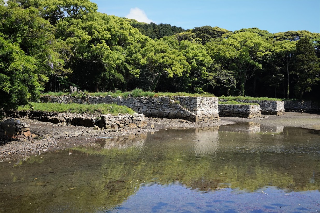 この船渠遺構の築堤の石積みは当時の原型を保っていて4つの突堤と5つの船渠がほぼ完璧な状態で残されている。(現在は5つの内1つの船渠は埋め立てられている。)