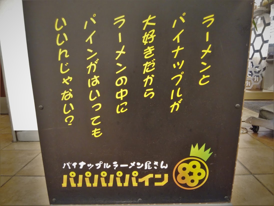 このパイナップルラーメンなるものを提供している「パパパパパイン」というお店によるとこのパイナップルラーメンは『世界初のパイナップルラーメンでスープの4分の1がパイナップル果汁!煮干しと昆布の和風スープにパイナップルの甘味と酸味が加わったあっさりラーメン!おすすめのたまごもパイナップル味!』とのふれこみだった。